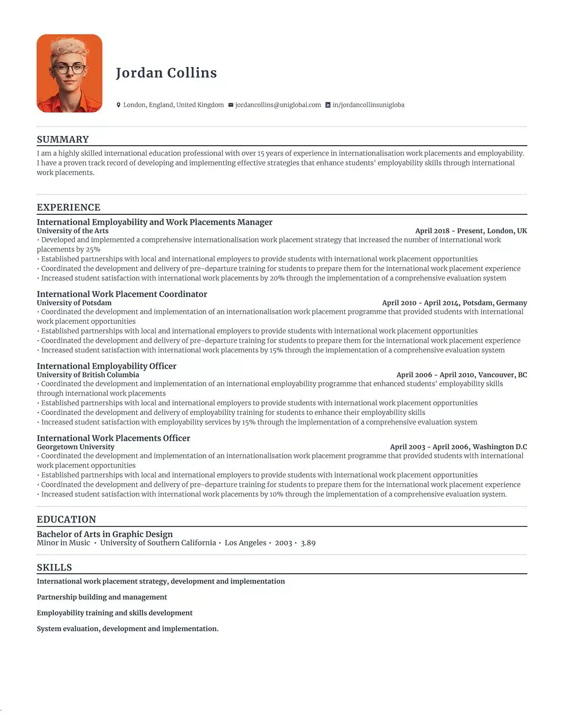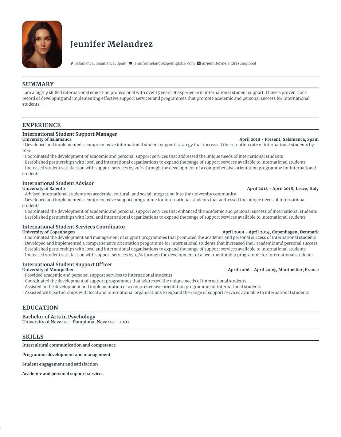 “UniGlobal made the formatting breeze through like never before! The AI-driven CV writer and cover letter creator crafted the perfect documents based on my profile and target job description. I highly recommend it! ” – Hannah H.